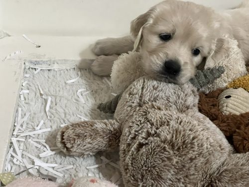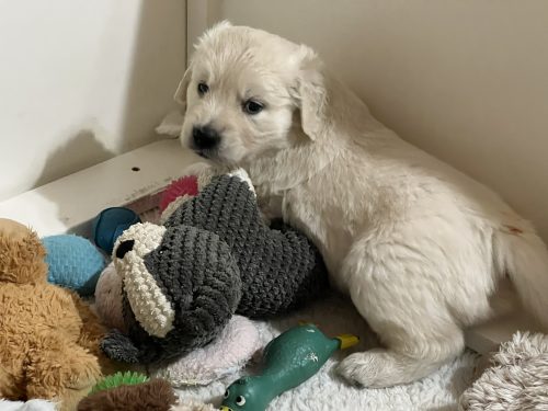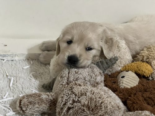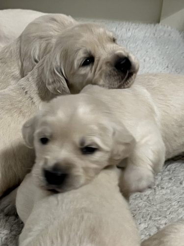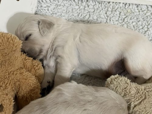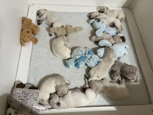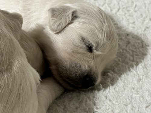 On Friday January 9th our Meadhbh blessed us with a litter of 6 boys and 2 girls. This is Meadhbh’s first litter and she is already an amazing mummy . Pups are all doing very well and are growing into nice chunky babies already!