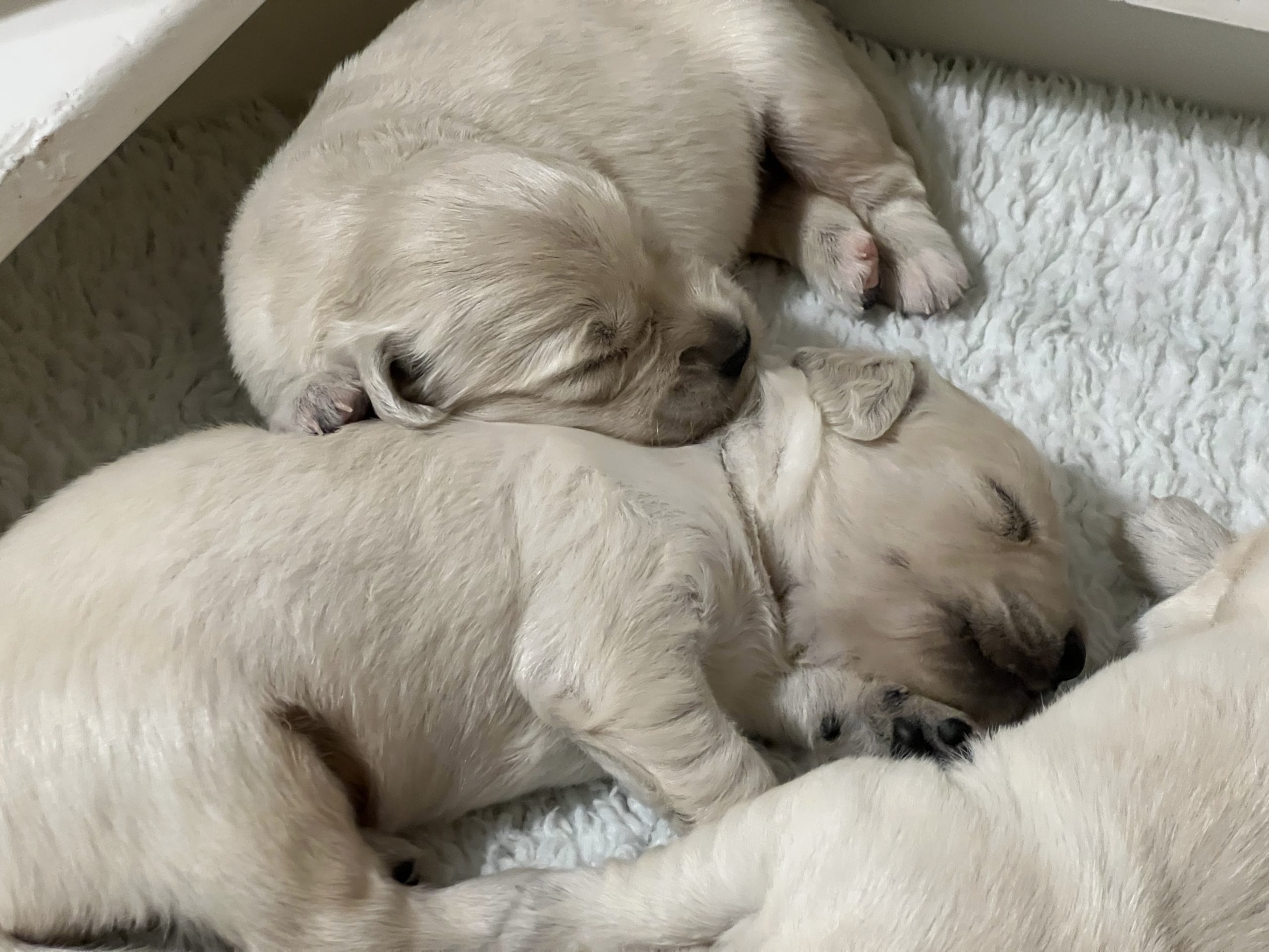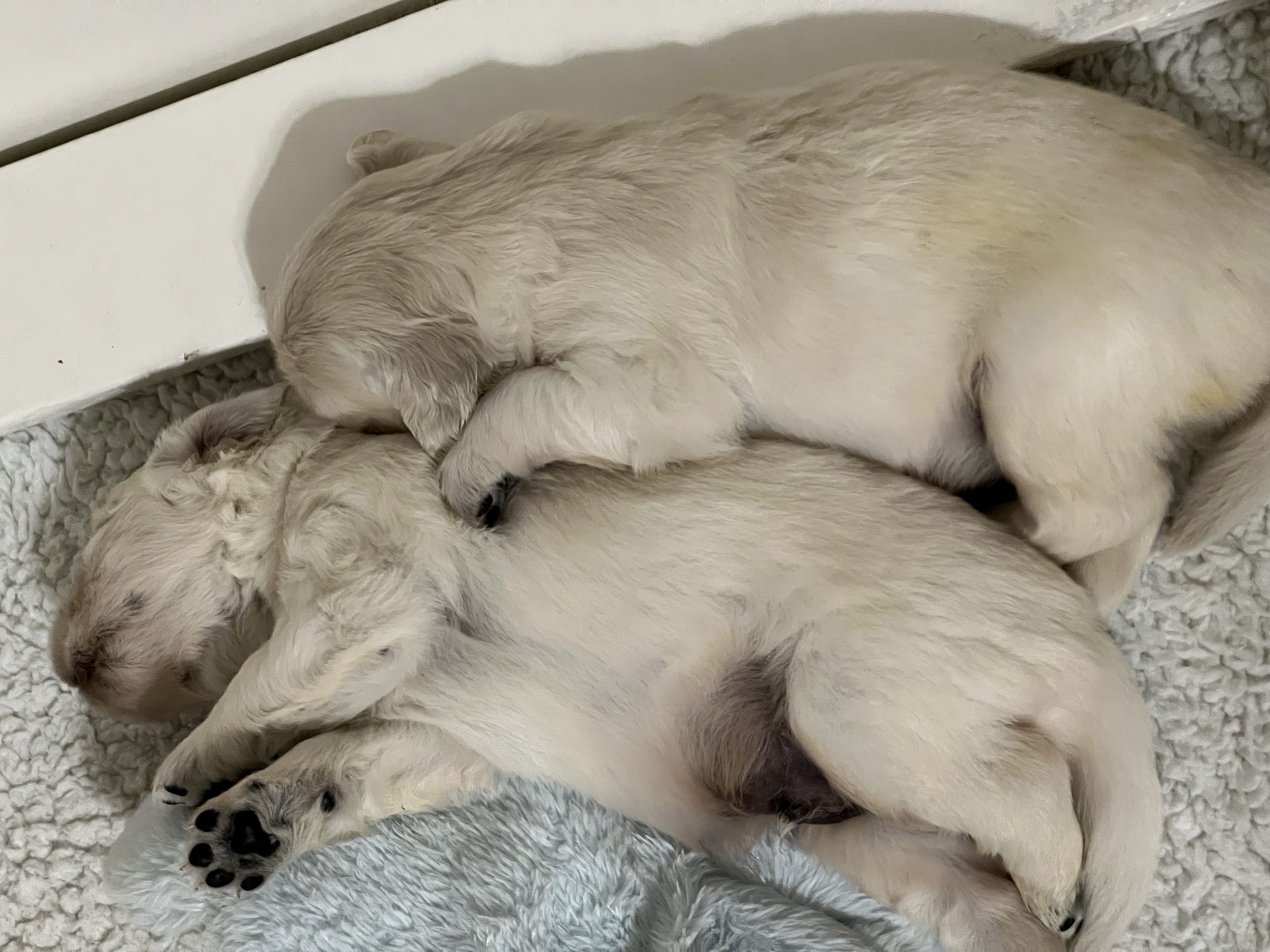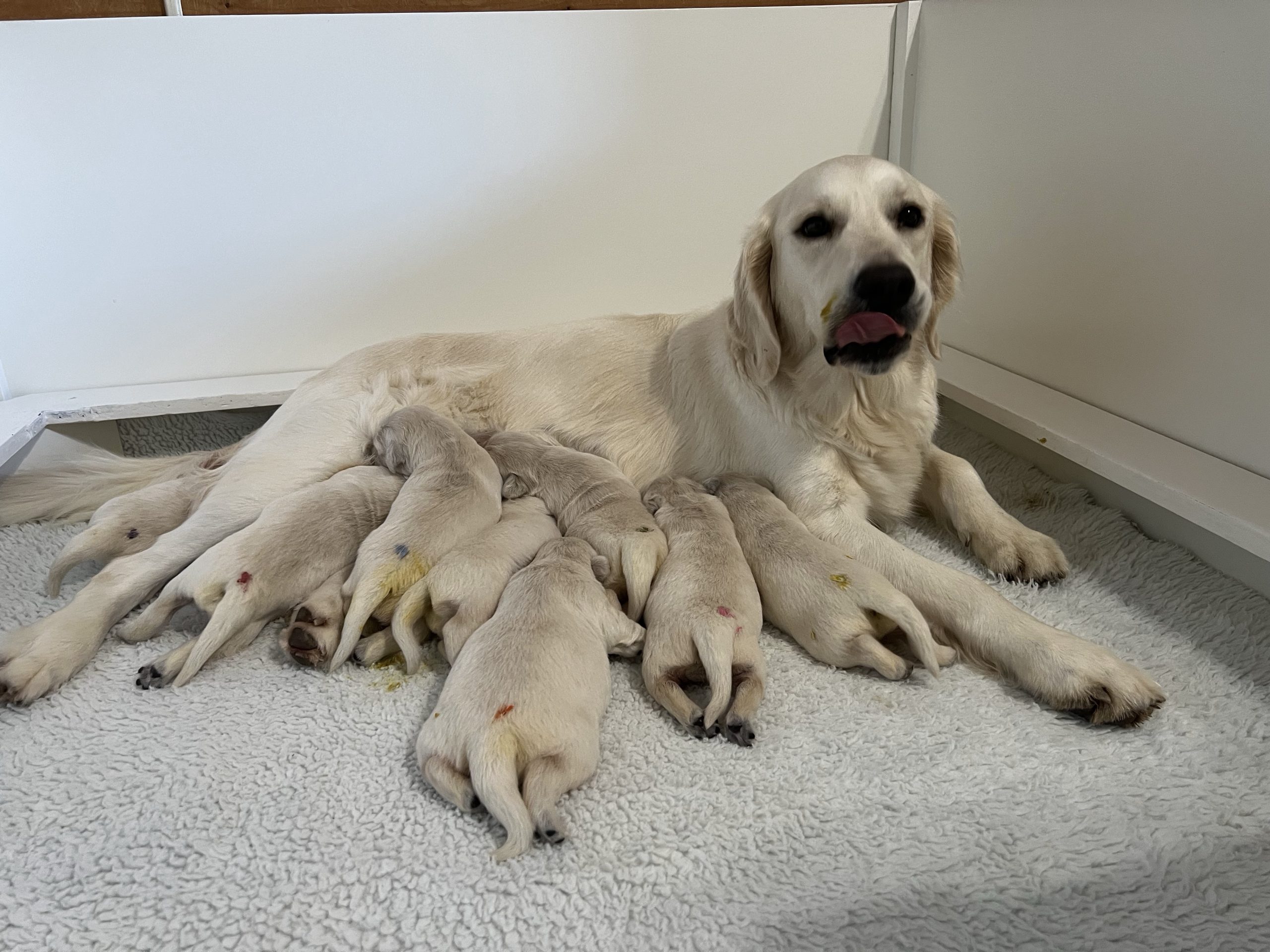 On Friday January 9th our Meadhbh blessed us with a litter of 6 boys and 2 girls. This is Meadhbh’s first litter and she is already an amazing mummy . Pups are all doing very well and are growing into nice chunky babies already!